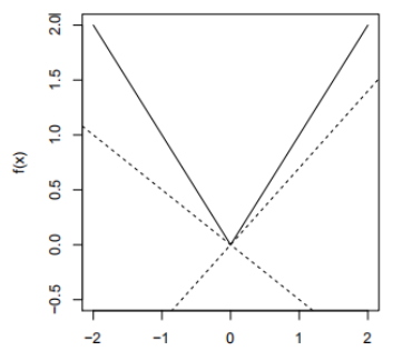 对于任意\(f\), \[ f(x^*)=min_{x} f(x) \iff 0\in \partial f(x^*)\tag{11} \] 这是非常有意思的一点。以往用梯度的时候,点\(x\)是极小值点能说明\(\nabla f(x)=0\),但是反过来并不成立,而用次梯度来思考的话,这成了一个等价条件。这里我们只需要证明必要性: \[ \forall y\in \text{dom} f,f(y) \geq f(x^*)+0^T(y-x^*)=f(x^*)\tag{12} \]